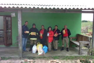 passando em todos os bairros da cidade de Butiá para arrecadar alimentos, cobertas, roupas, produtos de limpeza e higiene para a Campanha do Agasalho e também para o Hospital de Butiá. Os alimentos foram distribuídos para o Hospital de Butiá e na comunidade terapêutica RECRIAR.