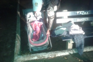 Em revista, um revólver calibre 22 sem munições, foi encontrado embaixo de um bebê de 3 meses, filha de F. P. T., que estava dentro no carrinho.