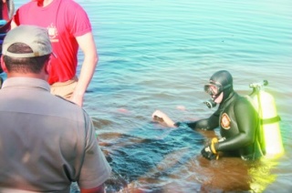 Os primeiros bombeiros que chegaram vieram de São Jerônimo, como não dispunham de equipamento de mergulho, tentaram localizar o corpo utilizando uma corda com um gancho na ponta, um dos bombeiros mergulhava, mas sem equipamento, não tinha como fazer uma busca mais completa. Após uns 40 minutos chegaram os bombeiros de Porto Alegre, um dos soldados, com o equipamento de mergulho, logo entrou na água, e após alguns minutos de busca ele acabou encontrando o corpo, e com o auxilio de seus colegas o retirou da água.
